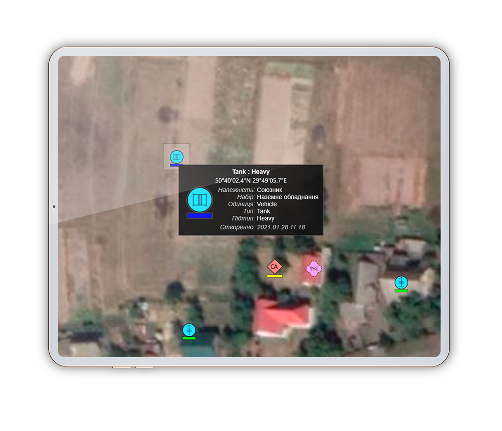 mapping of spotted objects on digital map goes according to NATO MIL-STD 2525 D